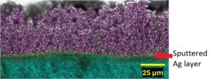 The device fabrication was completed with deposition of back contact electrodes with DSR1 low vacuum sputter coater. The back contacts were formed by deposition of 80 nm Ag on top of N-DPSA layer as HTM layer.