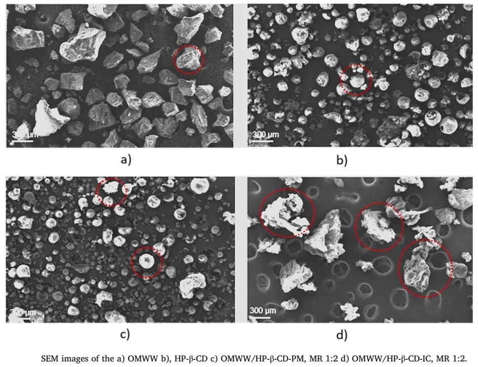 In this study the HP-β-CD cone-shaped structures are employed to encapsulate OMWW phenolics due to their amphipathic (Hydrophobic interior cavity and hydrophilic exterior surface) structure as a host-guest complex (With different molar ratios), to achieve a stable structure that can replace synthetic antioxidants with natural alternatives which aligns with consumer preferences.